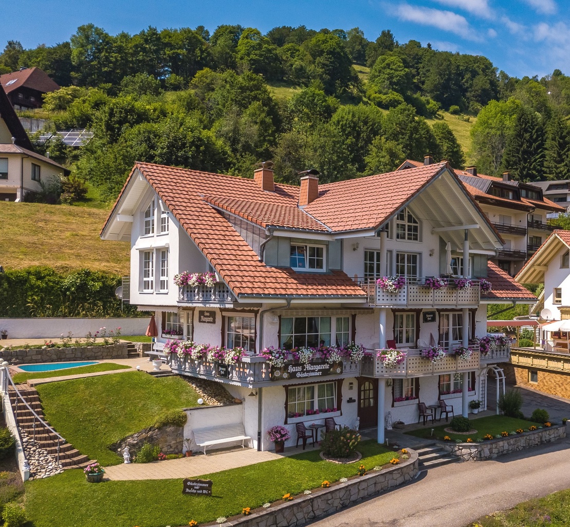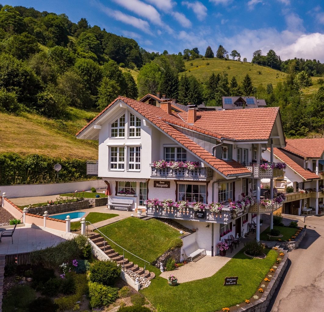 Ausenansicht Haus Margarete im Hintergrund grüne Wiesen und Wälder  - Außenansicht Haus Margarete im Sommer  - Frühstücks-/Aufenthaltsraum - Frühstücks-/Aufenthaltsraum - Doppelzimmer 1 - Doppelzimmer 2 - Terrasse mit herrlicher Aussicht - Skilift Rollspitz  - Das Skigebiet Wieden/Münstertal mit seinen 6 Liften ist zu Fuß erreichtbar.