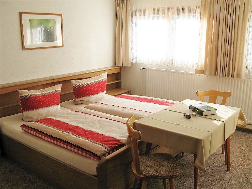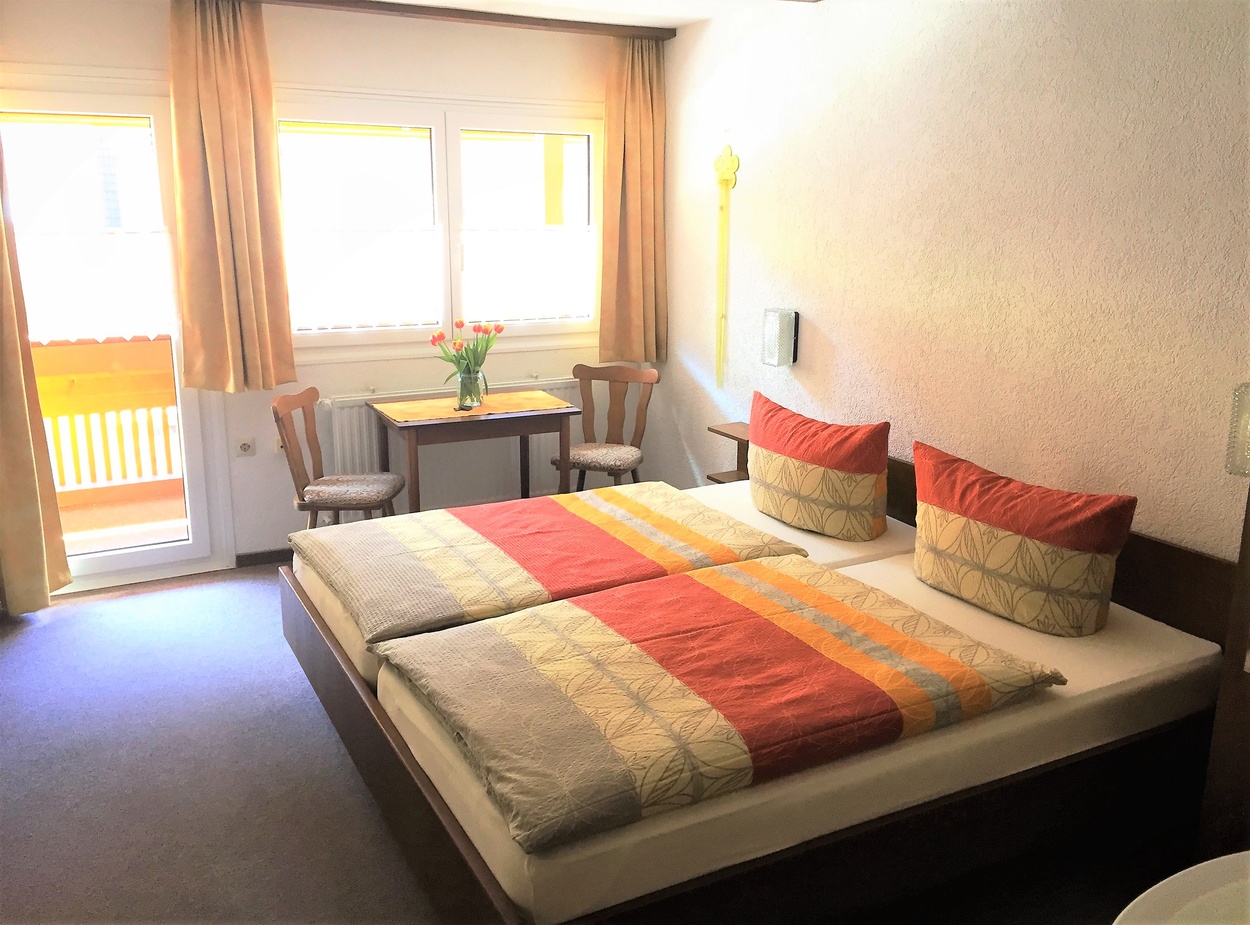 freundliche Gästezimmer mit Du/WC, z.T. Balkon, geräumiger Aufenthaltsraum mit TV, Kaffeeküche mit Kühlschrank, überdachter Freisitz, Liegewiese, Parkplätze am Haus, kostenlose Garage und Trockenraum für Biker- und Skiausrüstung. Persönliche Beratung und Tourenvorschläge.