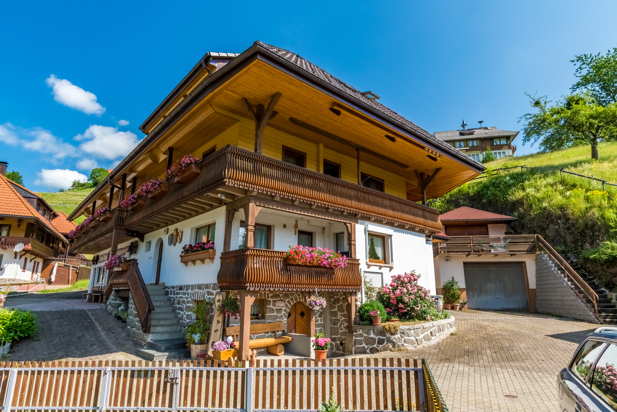 Außenansicht des Hauses mit Sitzecke - Außenansicht des ganzen Hauses  - Gemütliche Sitzbank am Haus - Hausansicht im Winter  - Außenansicht des Hauses mit Garten im Frühjahr - Unser Frühstücks- und Aufenthaltsraum - Beispiel eines Gästezimmers  - Beispiel eines Gästezimmers- dieses hat einen Balkon - Beispiel für eine Dusche - Beispiel eines Gästezimmers - Ansicht Badezimmer - verschneite Tannen am Belchen  - Winter bei uns vorm Haus mit Wanderweg - Winteraussicht vom Haus auf verschneiten Hang - Letzbergweiher - mit schönen Sitzbänken - Blick auf den Lärchenweg bei Rollsbach im Herbst - Aussicht vom Belchen mit Alpen im Hintergrund - Gipfelkreuz auf dem Belchen mit Sonnenuntergang -