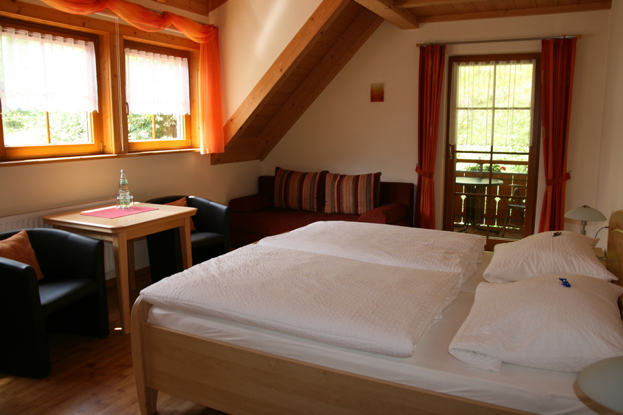 In unserer familiär geführten Pension in sonniger Südlage erwarten Sie 3 helle, geräumige Zimmer, alle mit DU/WC, Fernseher und Balkon/Freisitz.