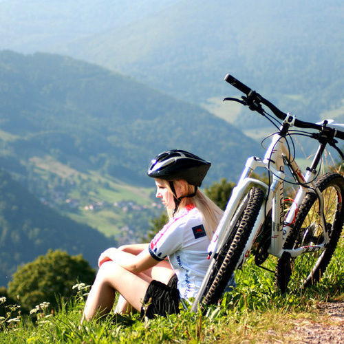 Ein beliebtes Ziel für Radfahrer ist das Almgasthaus Knöpflesbrunnen auf über 1.000 MeternAusblick auf das Wiedener Tal und den Rollspitz.Blick auf die Utzenfluh, oberhalb von UtzenfeldMountainbikerin zwischen Belchen und FelbergAusblick auf die umliegenden SchwarzwaldbergeÜber kühle Brunnen und Erfrischungsmöglichkeiten freut sich der Radfahren besonders auch an warmen Sommertagen.Die umliegenden Urlaubsregionen sind schnell zu erreichen und bieten ebenfalls SehenswertesDownhill geht es ins Tal